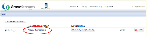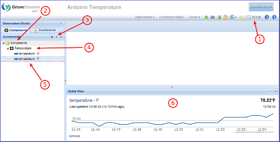 This tutorial walks through the creation of a user account, an organization, and an Arduino sketch that uploads temperature readings into GroveStreams every 20 seconds.Two data streams will be created: