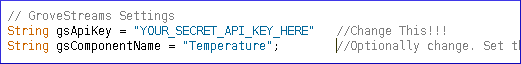 1. Set the gsApiKey variable in your sketch to match your GroveStreams organization Secret API Key.