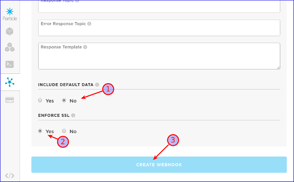 1. Enter the Event Name. It must match the name passed from the Electron code above: Spark.publish("f", voltageBuf, 60, PRIVATE). Use a short name since this is a cellular board and billed amounts are by bytes passed. Our event name is: f