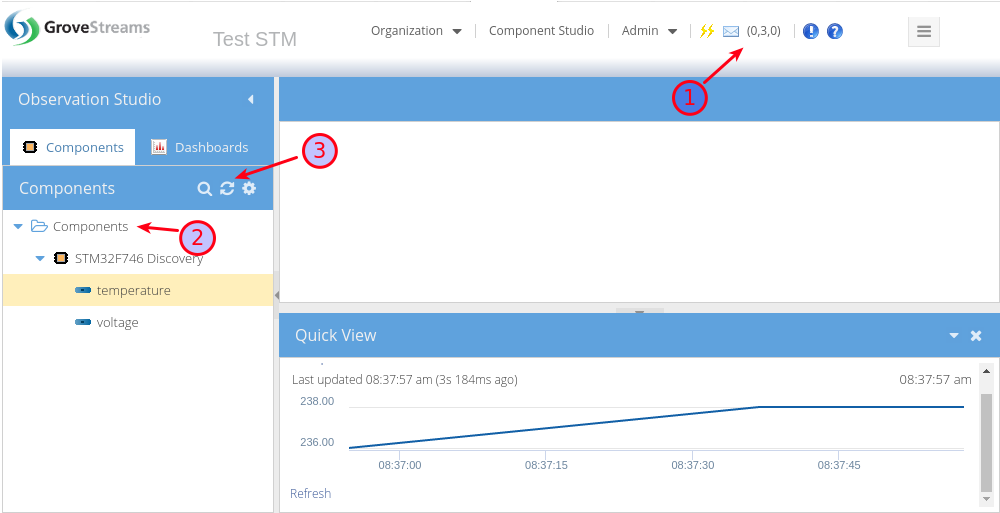 Congratulations! You have successfully pushed data from a STMicroelectronics board into GroveStreams and you have created a command dashboard.