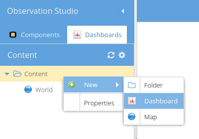 Select the Dashboards tab, right-click on the Content folder and select New - Dashboard