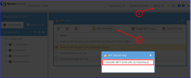 1. Select the Admin - API Keys menu option and choose the Feed Put API Key (with auto-registration and request stream rights) key