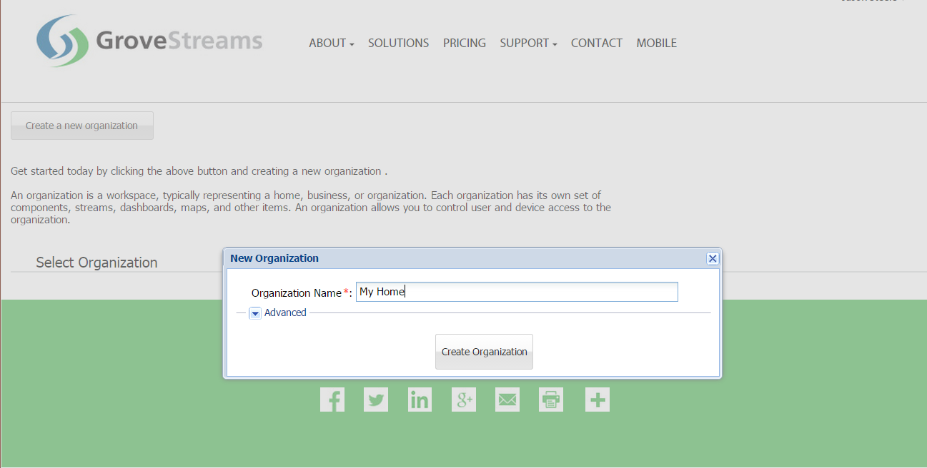 Step 1: Create a Free GroveStreams User Account and Organization