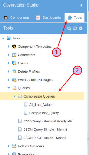 1. Sign-in to GroveStreams, enter the studio, choose the Tools tab on the left side of the studio.