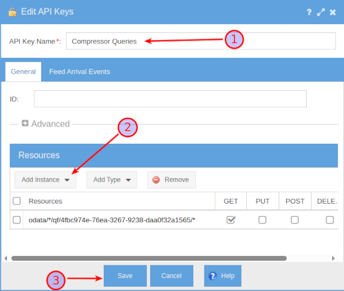 2. Click the Add Instance button and select OData URL and select the query folder from above. All query results in this folder will become available to reporting tools, such as Tableau. The API Key will only work for the selected folder when Add Instance is used (more secure). Use Add Type to create an API Key that will work for any folder (less secure).