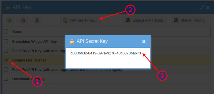1. Select the new API Key from the list of keys