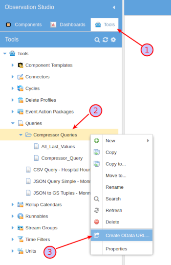 OData enables you to share a list of GroveStreams query results with external tools by creating an OData URL for a specific query folder within your organization. Here's how:Step 1: Create a set of query results for reporting