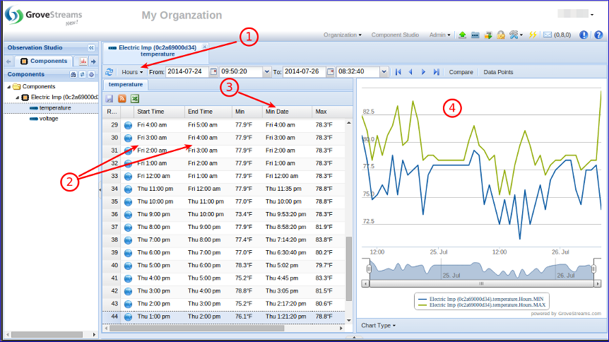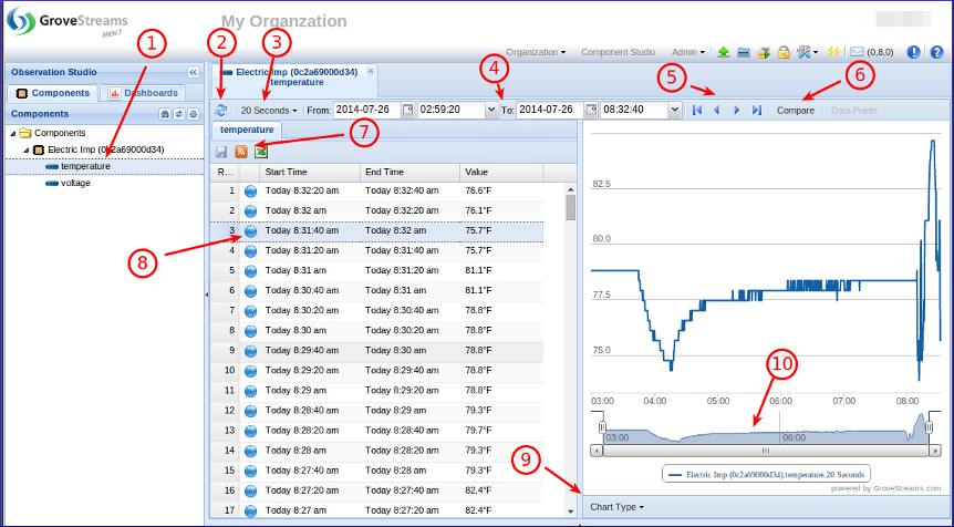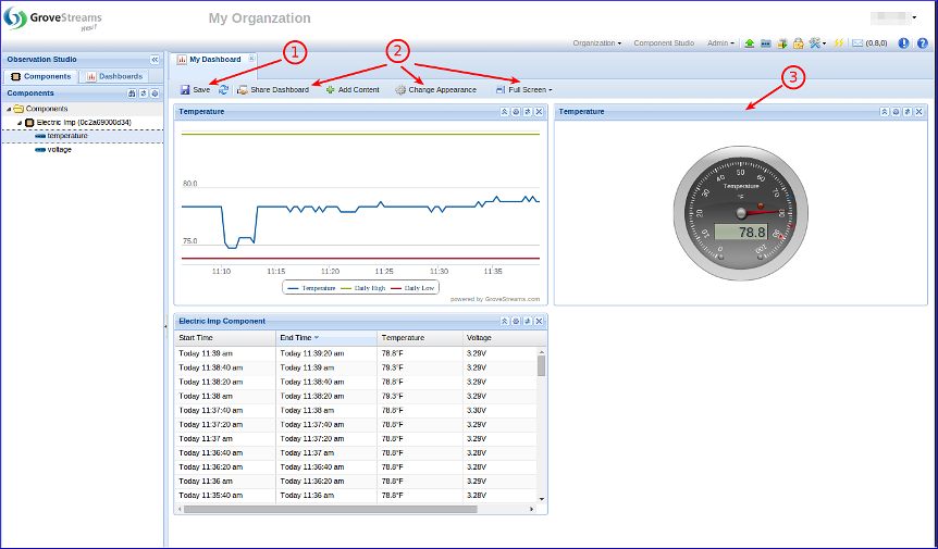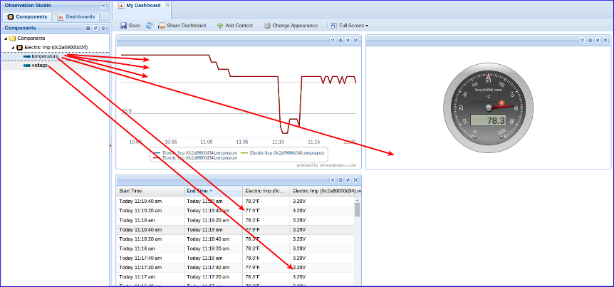 This tutorial follows the GroveStreams Electric Imp Feed PUT example which demonstrates how to upload temperature and voltage readings into GroveStreams. Although this tutorial follows the Electric Imp example, it can be used for any device that uploads data into GroveStreams.