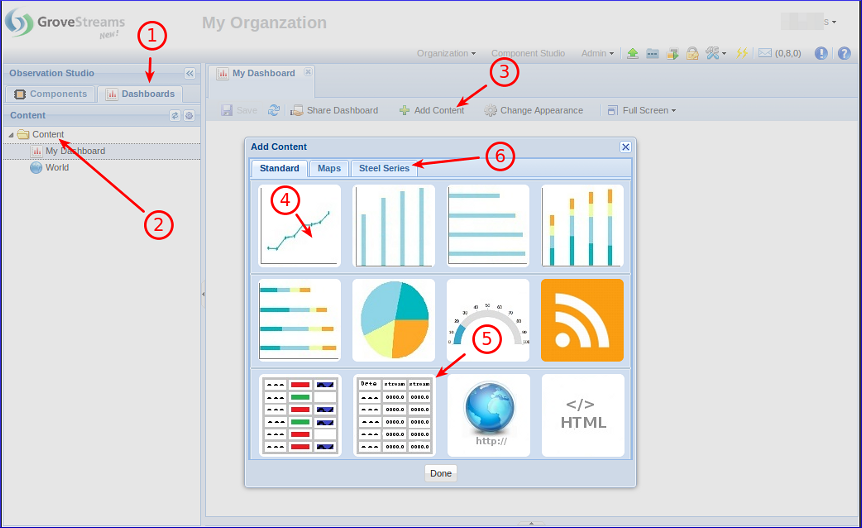 Log into your GroveStreams account, select your organization, and select the Tools tab on the left.