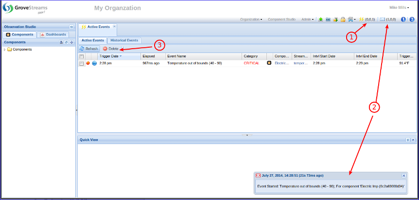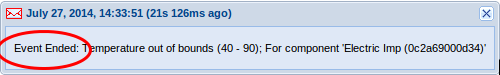 As each event ends (i.e. the temperature moves back into its normal range) its Stop Action Package will be executed. The above is a user notification that pops up when the event ended.