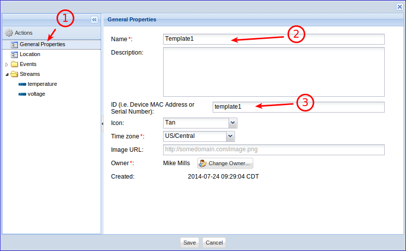 The Electric Imp Example demonstrates how to push data into GroveStreams from an Electric Imp device. That example has data arrive into a default component with default streams. Creating components and streams with default settings will not be acceptable for most use cases. The GroveStreams Feed PUT APIs provide many ways to automatically create and set component and stream attributes the first time data is uploaded. The most common technique is to model a Component Template and then include its ID with every Feed PUT API call. That's the technique we'll use for this example.A component template can be modeled complete with streams and events and be used to create many components with the same features. A component template's ID can be included as part of a Feed PUT call and when it is, it tells GroveStreams to create a component based on the template if the component does not already exist.