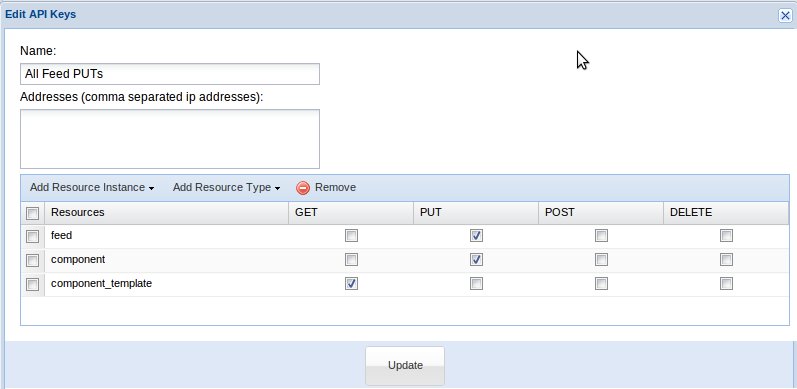 Below is an example of a key that can be used for all Feed PUTs. This key also allows a device to create a component automatically from a component template if it does not already exist (automatic device registration). This is a similar key used to allow our Forum server to upload metrics into GroveStreams.